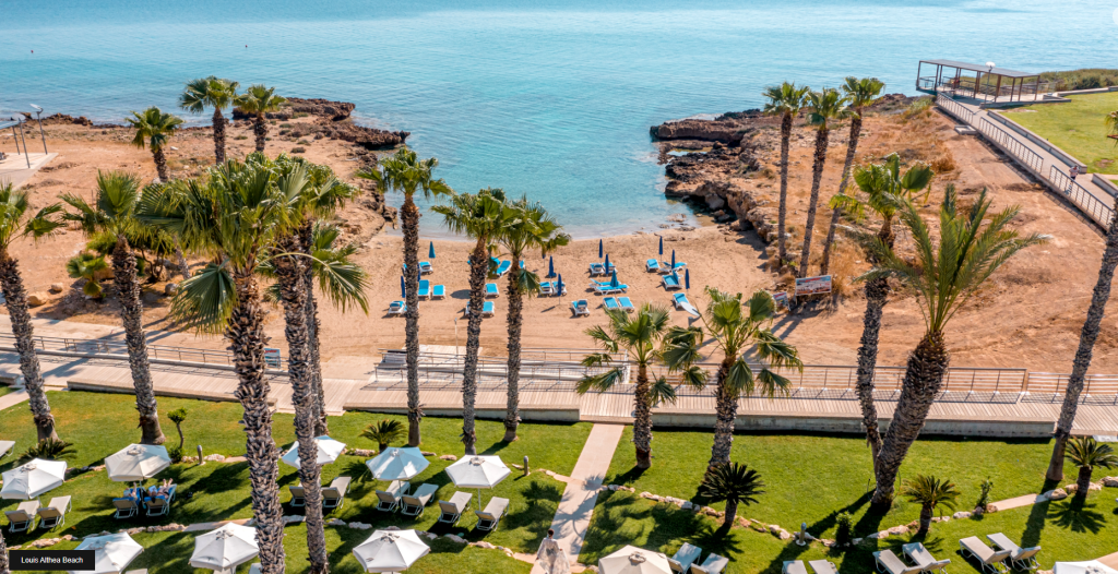 With its world famous crystal clear waters, golden sand and sunshine to last for a life time, Althea Beach Hotel is built in the traditional monasterial style on a promontory of Pernera beach in Protaras, the best of Cyprus' Mediterranean coastline ,400 meters from Paralimni Marina, on one of the most popular tourist destinations of the island.